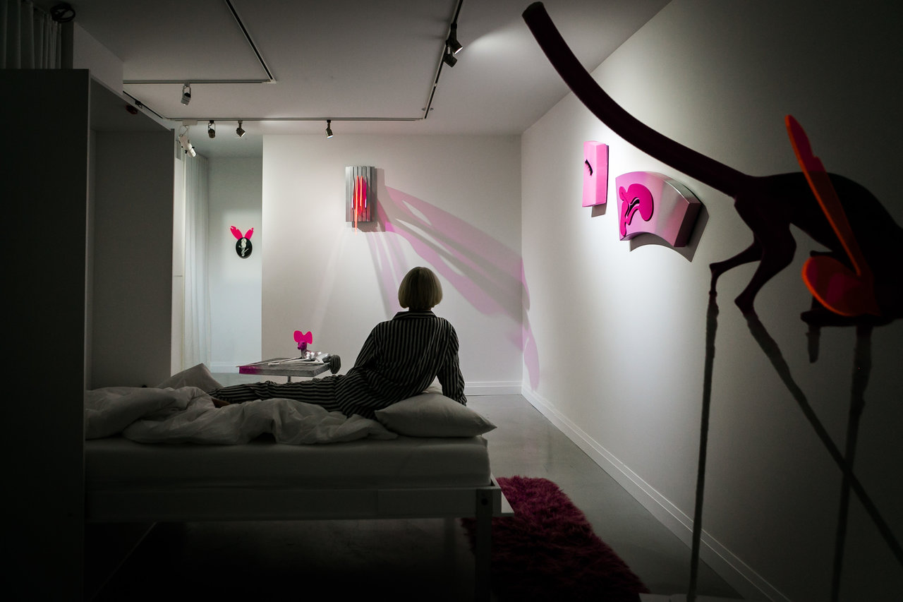 AV: Murphy beds are great: so discreet, and virtually blend into the wall. They can also be used as “walls” to break up the room and incorporate into the exhibition. The typical hotel room feeling comes from the ‘typical hotel’ decor. The gallery is nothing like a hotel. At Darren Gallery - artwork dominates the space and the furniture is minimal. If anything, the challenge has been more the other way around - that it doesn’t feel enough like a hotel. How do you make a gallery with concrete floors and white walls feel warm, comfortable and inviting enough to sleep over? I am hoping, with selective furniture for lounging, comfortable mattress, ambiance and with a unique art exhibition, I can transform the space.