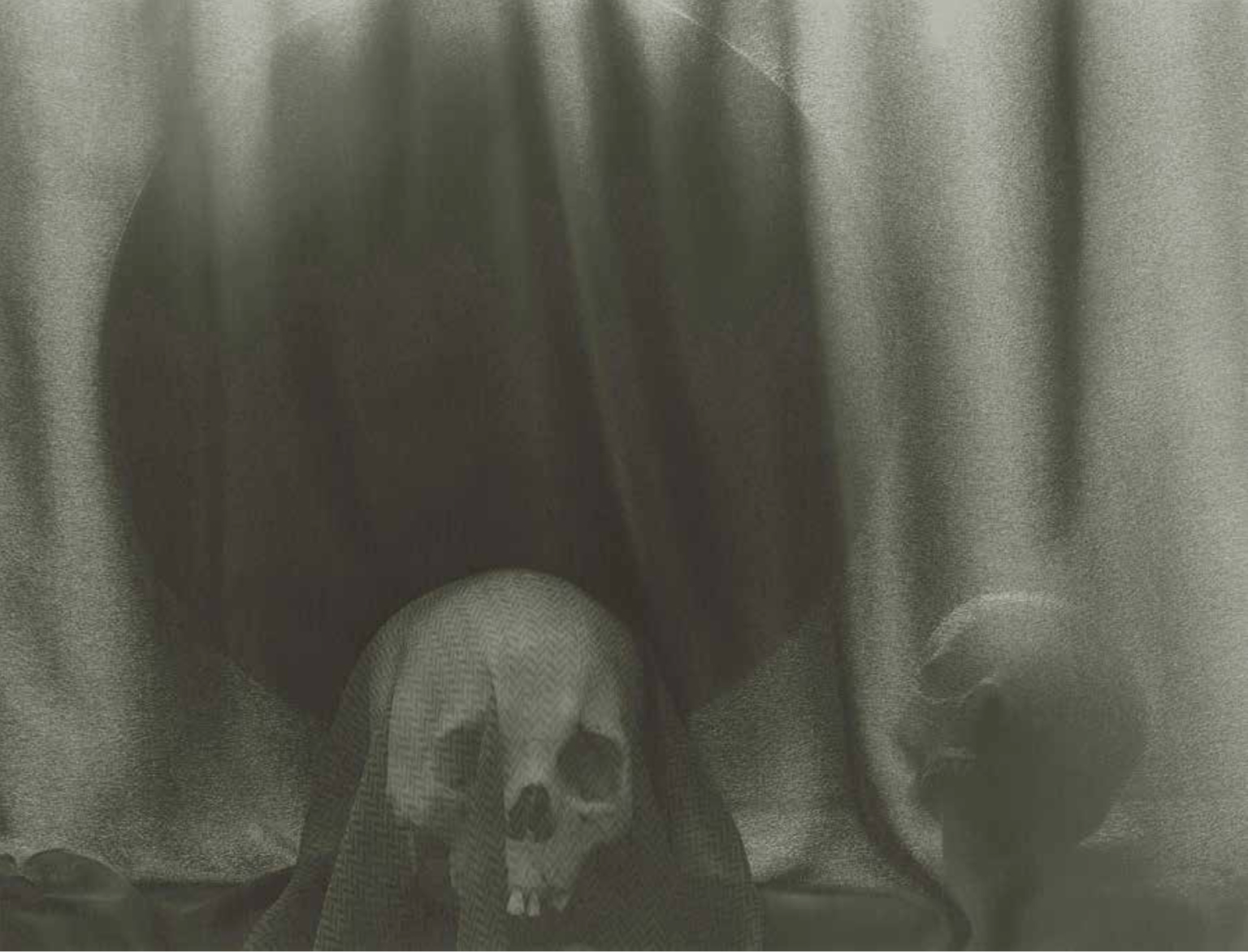 The photographs of Lynn Stern send shivers, carrying with them a sense of profound apprehension. In the Doppelgänger and Spectator series in particular, shrouded skulls rise into view from below in an eerie kind of resurrection, grainy and imprecise in an indefinable hue. Are they dusted in sepia, umber, or pewter? The 19th century writer George MacDonald may have said it best in his book The Portent, “...an airy, pale-grey spectre, which few eyes but mine could see."
